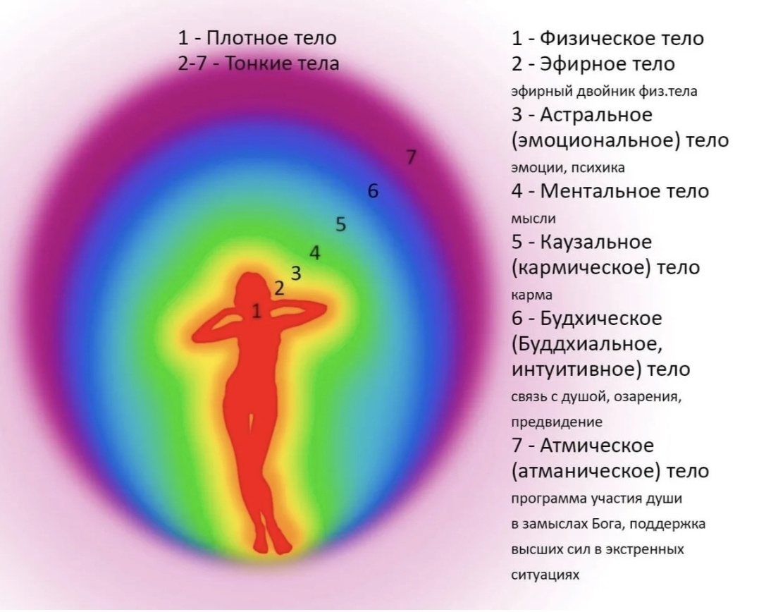 Ментальное тело выходит за пределы физического тела на 10-20 см. и в целом повторяет его контуры.
