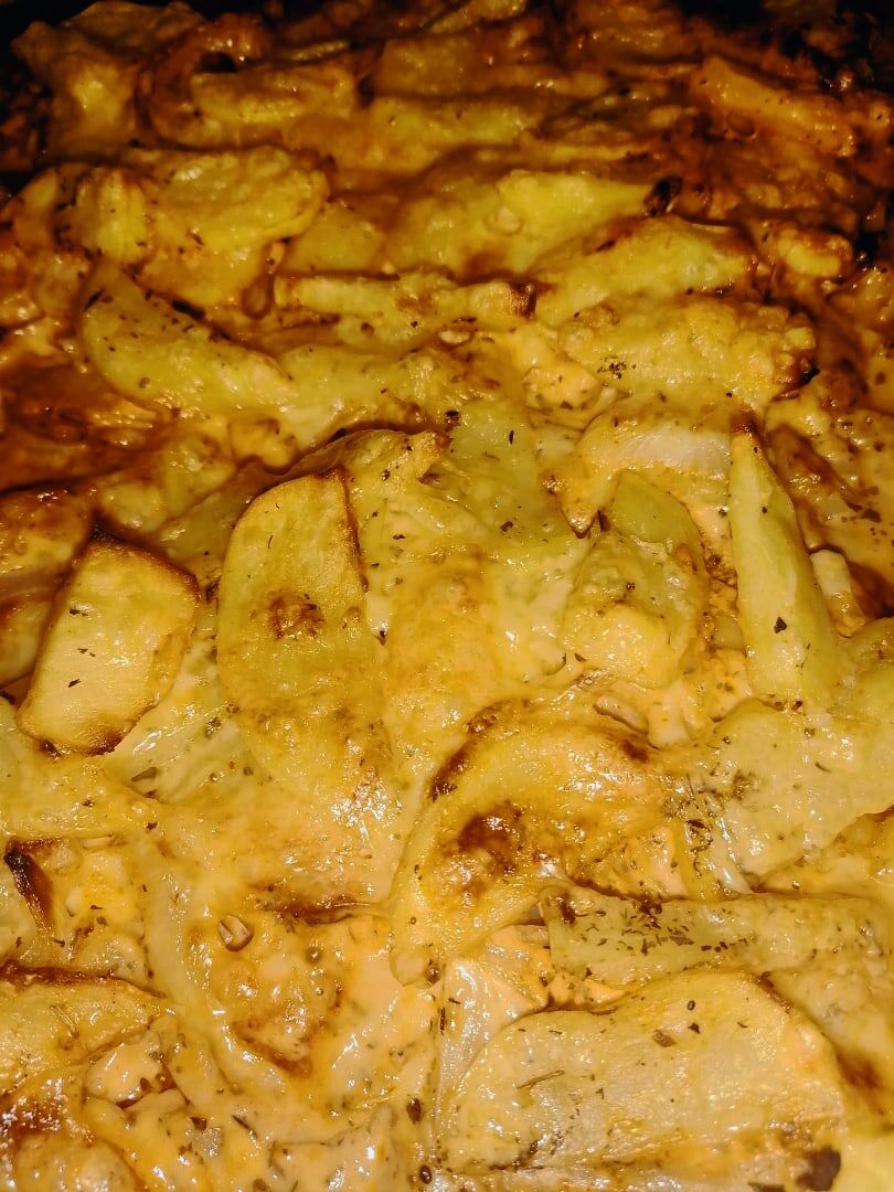 1. Мясо нарезать на кусочки. Картофель чистим и нарезаем дольками. Лук режем полукольцами. Выкладываем на противень. 2. Добавляем специи по вкусу (соль и перец) я так же использовала сушёный базилик и итальянские травы. 3. Делаем соус. Размешиваем Томатную пасту с майонезом в одинаковых пропорциях. Смазываем мясо и картофель. Сыр натираем на крупной тёрке и посыпаем сверху. 4. Запекаем 35-40 минут при 180°. Время зависит от режима и вашей духовки. Я немного передержала, сыр немного подгорел по бокам.