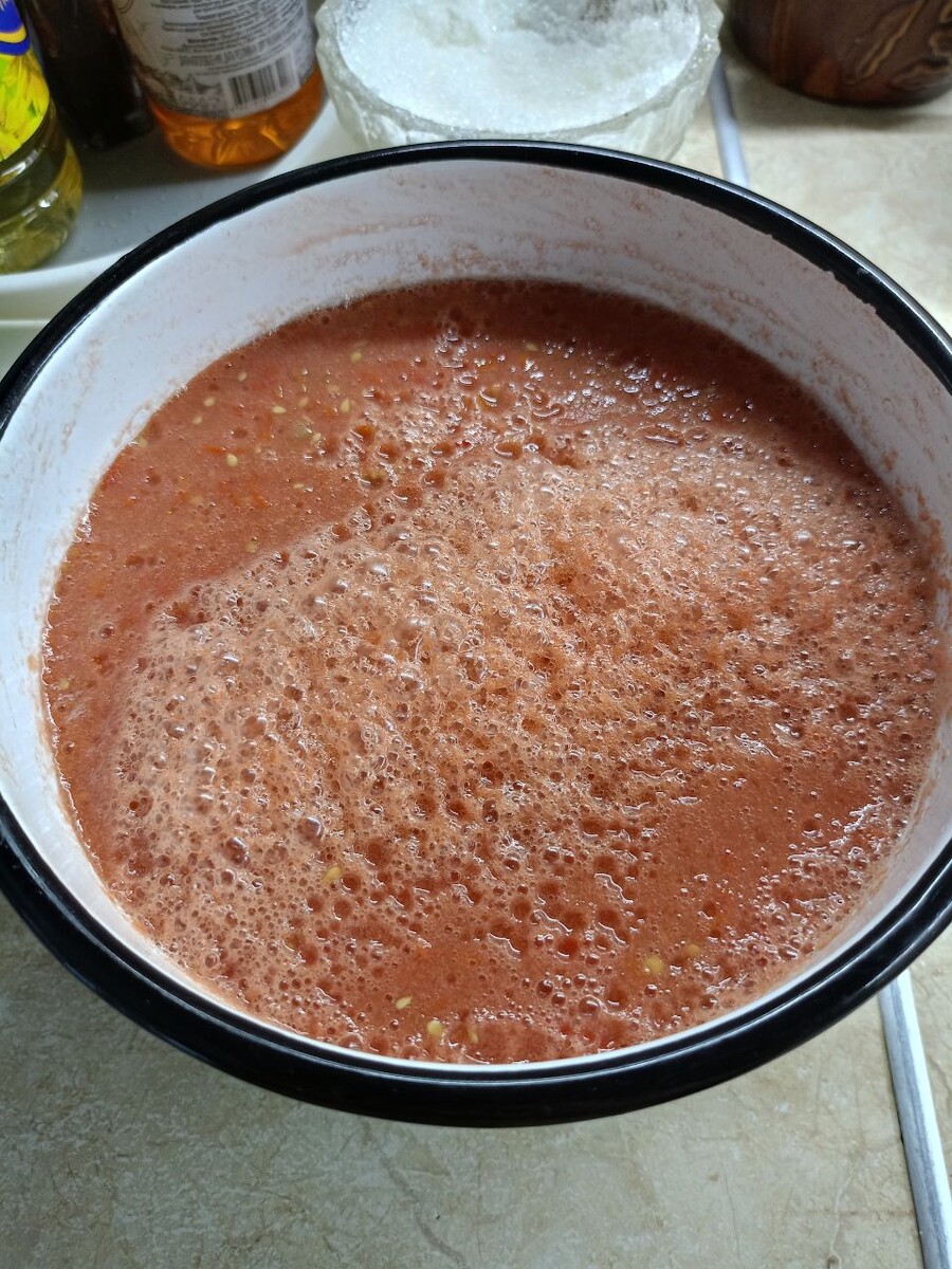 И снова здравствуйте! Планы могут поменяться в секунду. Я планировала готовить "Огурцы по-фински", а наткнулась на рецепт "Огурцов для гамбургеров". У этой заготовки много разных названий: и "бургершоны", и "огурцы для бутербродов и бургеров", и "огурцы как в Макдональдсе", и "огурцы для гамбургеров", и "огурцы с куркумой" и "огурцы в яблочном (столовом) уксусе т.д. Единого названия я не увидела. Но принцип приготовления один и тот же. Хотела было назвать мои огурцы "огурцы с зерненой горчицей" (еще больше запутать народ в названиях), но вовремя вспомнила, что огурцы по-фински тоже готовятся с такой дижонской (французской) горчицей, и оставила название "Огурцы для гамбургеров". Пусть будет так. Продуктов совсем немного. Самый длительный процесс - это просаливание огурцов с луком в течение 2-3 часов. Но пока мои огурцы просаливались, я успела кучу других дел сделать, например, приготовить баночку сырой аджики или горлодера с помидорами, солью и чесноком. Помидоры попались не особо мясис