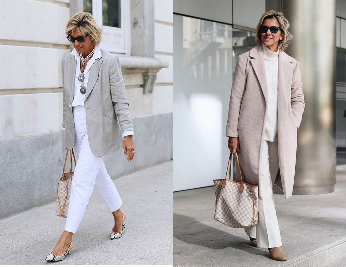 Достаточно трендово будут смотреться многослойные образы и вариации одного цвета, отличающиеся между собой по тональности. Касаемо обуви, для женщин 60+ лучше выбирать удобный вариант на низком ходу.