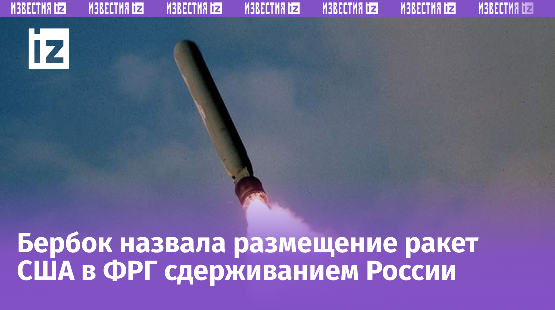 Американские ракеты, которые планируется разместить в ФРГ с 2026 года, защитят Германию от России. Об этом написала 3 августа глава немецкого МИДа Анналена Бербок в статье на сайте газеты Bild. «Что нас сейчас защищает, так это то, что мы инвестируем в нашу собственную безопасность и силу — в Евросоюз, в НАТО и в Германию. И это включает в себя решение о размещении крупномасштабных американских систем вооружения», — отметила дипломат. По словам Бербок, Берлину нужен надежный фактор сдерживания, чтобы Россия не осмелилась атаковать страну. Министр также добавила, что формирование современной внешней политики означает признание того, что только принцип надежды не защитит страны Европы от России. «Что нас защищает, так это наша поддержка Украины», — заключила она, отмечает «Газета.Ru». Пентагон сообщил 10 июля, что Вашингтон приступит к размещению дальнобойного оружия на территории Германии в 2026 году. Речь идет о зенитных системах SM-6, крылатых ракетах Tomahawk и гиперзвуковом оружии.