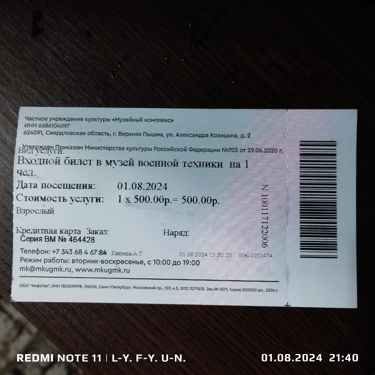 В закрытом помещении музея куда был куплен билет для экспозиции были предоставлены три этажа здания, доступ на 4 этаж был закрыт. На первом этаже были расположена техника, машинки, моцики, броневички. Можно фотографироваться. Аэросани, вентилятор сзади. На втором и третьем этаже выставка огнестрельного и холодного оружия, экипиповки, различных наград за военные успехи. Можно сфоткаться в качестве Петьки , Василия Иваныча или Анки пулемётчицы,( буденовку дадут и шинель) Именной калаш от самого мастера(гравировочка) Разные виды калашей Пулемётик Гранатки всякие-разные Сабельки для аристократов Много образцов военного шмотья разных эпох Вот в такой военной форме зимнего образца я служил в армии, ( афганка) Орденов и медалек было много Вот такой значок я носил в армии А такую медальку не носил в армии, да и видел только по телику их. Иностранное оружие тоже представлено. Английский Томпсон. Товарищь Маузер Наггано, ттшко Кинжальчеги горных людей Шашки, сабельки Кортики морс