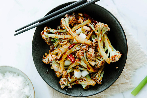 Вы любите китайскую кухню, но хотите попробовать что-то новое и необычное? Блюдо Гунбао из цветной капусты — это идеальный выбор для тех, кто ищет вкусные и полезные рецепты. Это блюдо обладает ярким вкусом и ароматом, благодаря традиционному сычуаньскому соусу и правильной технике приготовления. Хотя соус Гунбао известен благодаря курице Гунбао, его можно использовать для приготовления множества овощей. К соусу Гунбао отлично подойдет цветная и брюссельская капуста или грибы, например, Королевские вешенки. Хрустящие овощи или мягкие грибы хорошо впитывают вкус и создают что-то невероятно вкусное, но совершенно отличное от Гунбао с курицей. Существует два вида цветной капусты: с длинным стеблем и с коротким и более толстым. Рекомендую использовать цветную капусту с длинным и тонким стеблем. Нет. В большинстве рецептов китайской кухни для жарки овощей обычно бланшируют цветную капусту, чтобы сократить время жарки. Но этот метод не подходит для данного рецепта. Бланширование увеличивает