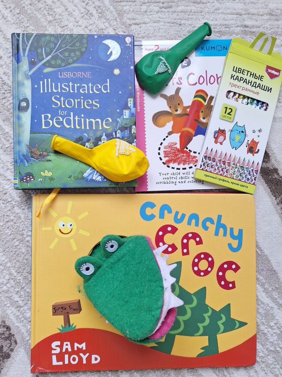 На этой неделе у моего ребёнка был день рождения и многие спрашивали, что ему подарить? Конечно, помимо игрушек семьи с детьми-билингвами всегда радуются англоязычным книгам. Вот несколько хороших идей. Сразу оговорюсь, я не занимаюсь рекламой, поэтому ссылок на конкретные издания не будет. 🟠Книги с игрушкой на руку. Два в одном, плюс помогает развеселить ребёнка: может его поцеловать, пожевать пальчик и т.п. Вариантов много, суть одна, у нас, к примеру, есть вот такая: 🟠Книги с кнопками. Любимые темы у малышей: животные и транспорт. Картонная книга на английском с кнопками-звуками животных/ мотора/ сирены – отличный подарок. 🟠Картонные книги с окошками. Их лучше дарить после полутора лет, иначе ребёнок будет пытаться их рвать, не особо понимая, что происходит. Здесь порекомендую книги издательства Usborne. Для малышей у них шикарные издания. 🟠Красивый иллюстрированный сборник сказок, bedtime stories и т.п. Тоже советую присмотреться к Usborne, но не только. Главное, чтобы это было