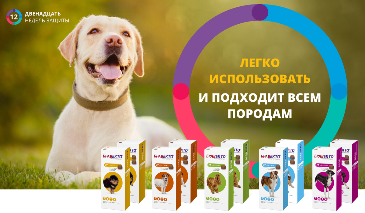 Бравекто это вкусняшка для собак с флураланером, никакая собака не откажется скушать это лакомство с приятным мясным вкусом! Бравекто защитит вашего питомца от аллергического дерматита, вызываемого блохами, а так-же акарозов, вызываемых иксодовыми клещами. Одна порция лакомства способствует защите собаки от блох и клещей на 12 недель, действует сразу-же, можно идти на прогулку буквально сразу, ведь вода и ультрафиолетовые лучи не снижают его эффективность. Гибель клещей всегда происходит еще до откладки яиц, что защищает собаку от болезней вызванных укусами и потомством клещей! Бравекто можно давать любым породам собак, абсолютно без ограничений, ведь он безопасен, даже для собак брахицефалов и с дефектом MDR-1. Так-же Бравекто используют для лечения Демодекоза, Саркоптоза и Отодектоза! Так-же Бравекто предотвращает заражение собаки самым опасным заболеванием - пироплазмозом, вызванным укусом иксодовыми клещами. Бравекто можно давать беременным и кормящим собакам, щенкам старше 8 недел