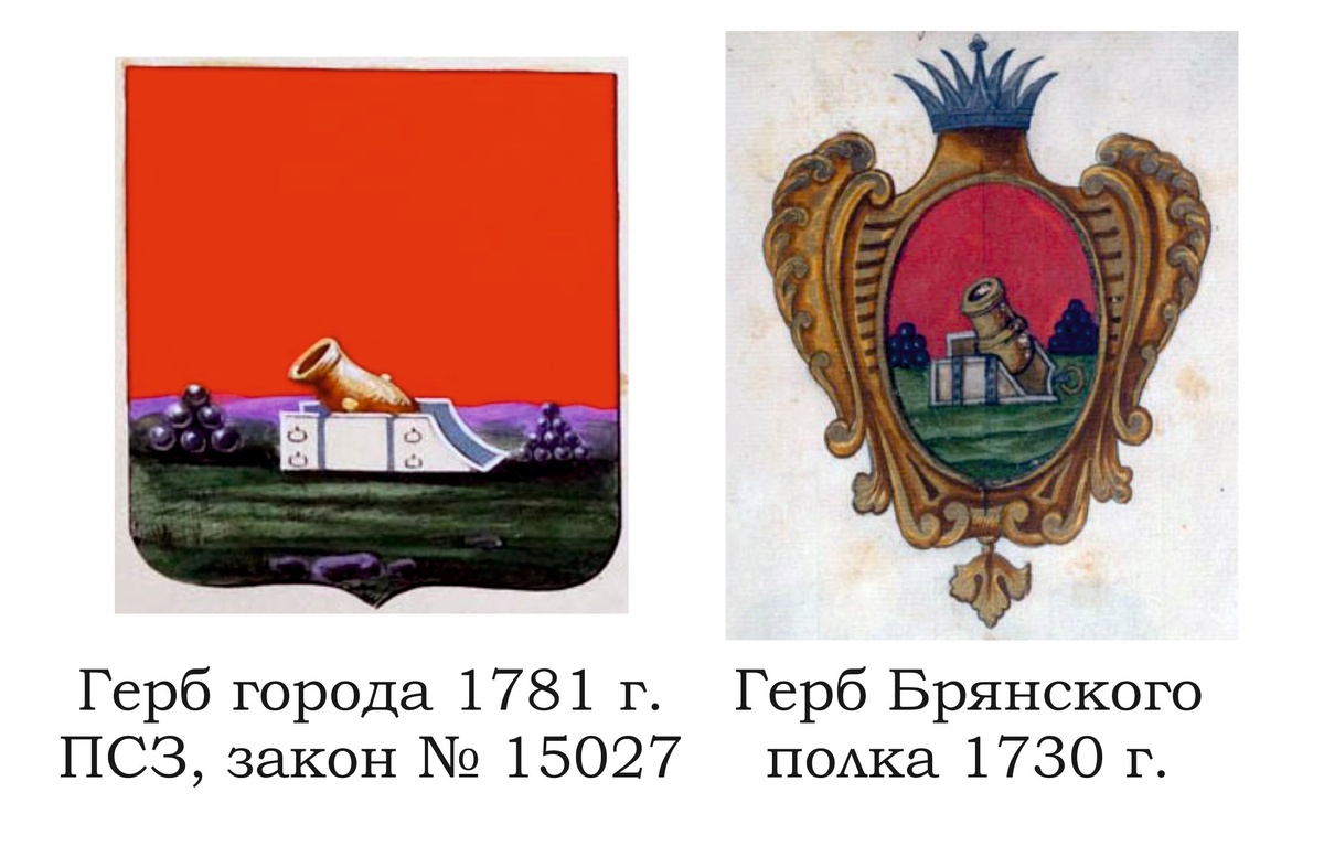 Для отличия же от герба Брянска достаточно некоторых деталей, например в большинстве оригинальных дореволюционных рисунков Брянска лафет изображен белым/серебряным, а не золотым, как в современном гербе Брянска, утвержденном в 2016 г. Можно добавить еще какое это отличие, и Брянская область получит герб, который займет свое