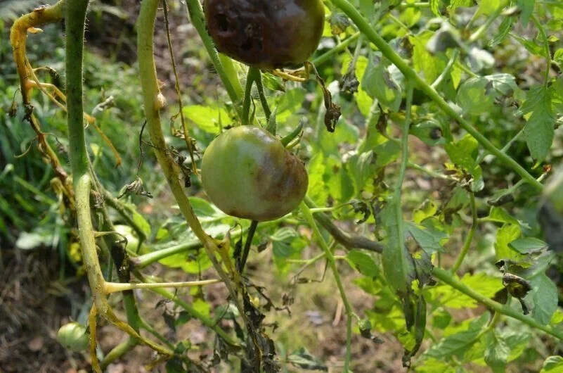 Доброе утро, друзья. В июле важно регулярно осматривать листья, чтобы не упустить появление фитофторы. Фитофтороз является грибковым заболеванием, которое может полностью оставить без урожая помидоров. Когда прохожу в теплице или на огороде меду грядками с томатами, всегда выборочно осматриваю нижнюю сторону листьев на кустах. Поскольку появления фитофтороза сразу можно определить по появившимся пятнами. На нижней стороне листа образуются темные пятна с белыми спорами. В результате споры распространяются на все кусты и происходит массовое заболевание. Далее если происходит распространение болезней, то на стеблях и листьях появляются темные пятна, которые постепенно гниют. Это же касается и плодов. Сначала на плодах появляются темные пятна, затем они разрастаются и помидор полностью гниет. Фитофтороз опасен тем, что быстро распространяется на кустах путем спор ветром или насекомыми. Избавится от болезни сложно, поэтому лучше проводить профилактическую обработку в конце июля. Опрыски