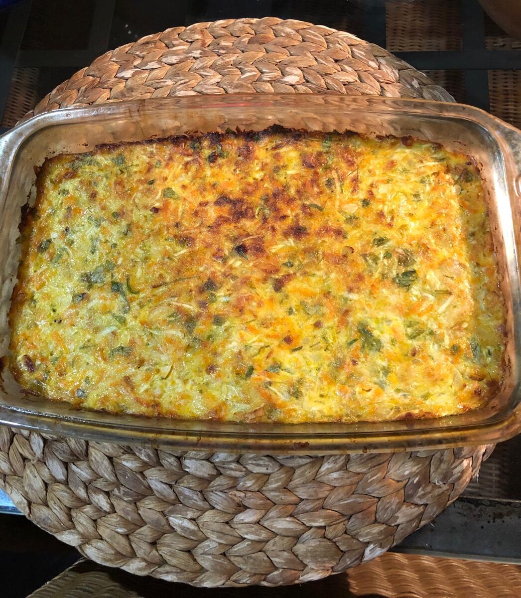 6. Смазать форму для запекания подсолнечным маслом, выложить смесь, разровнять лопаткой и поставить в разогретую духовку на 180 гр минут на 35-40 до образования лёгкой корочки