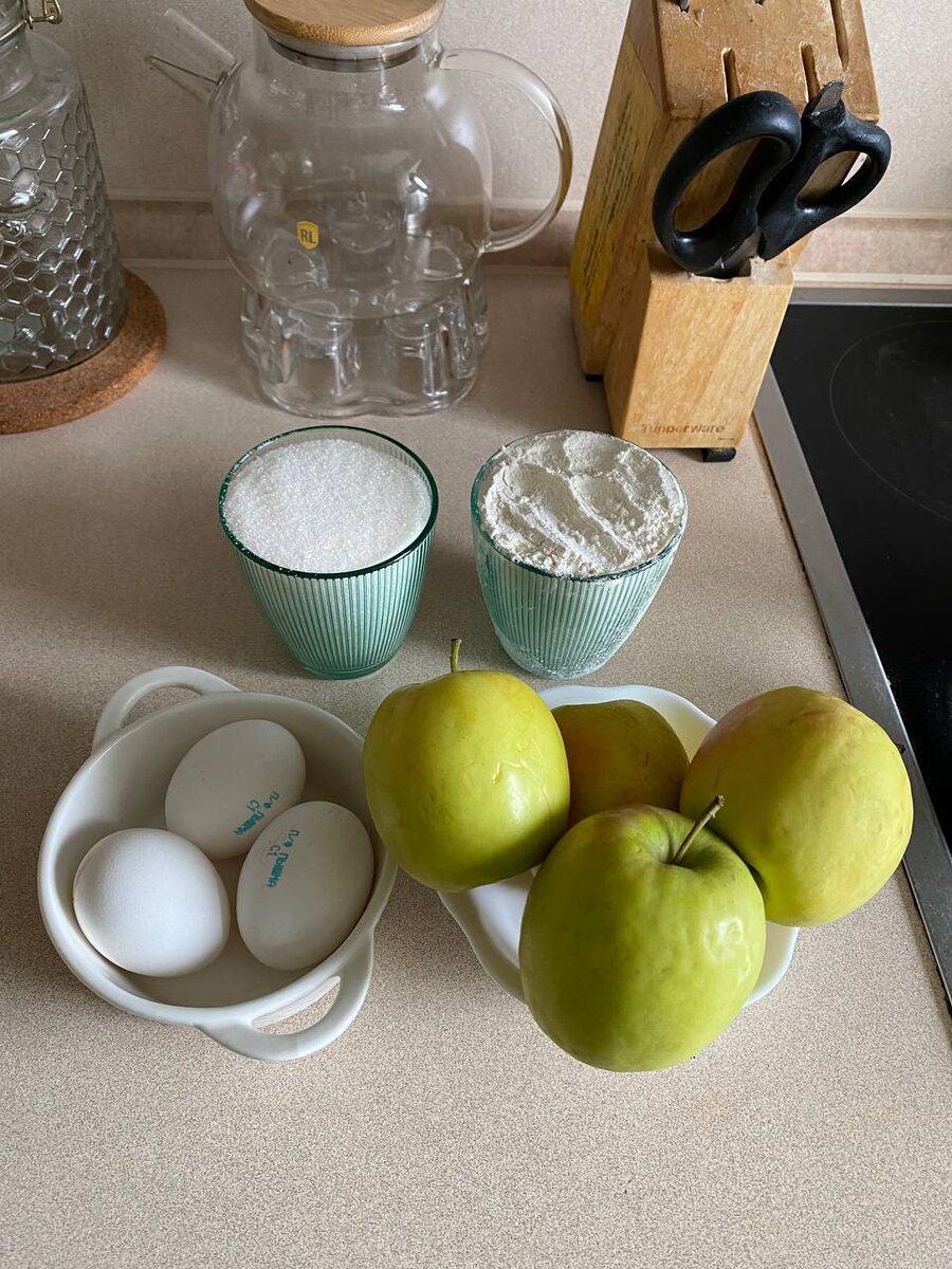 Ингредиенты: Яблоки (кисло-сладкие) — 4-5 шт. Яйца — 3 шт. Сахар — 100 г Мука — 100 г Разрыхлитель — 1 ч.л. Ванильный сахар — 1 ч.л. Сливочное масло — 20 г (для смазывания формы) Сахарная пудра — для посыпки (по желанию) Приготовление: Подготовка яблок: Вымойте и очистите яблоки от кожуры. Нарежьте их тонкими ломтиками, удаляя сердцевину. Приготовление теста: В глубокой миске взбейте яйца с сахаром до пышной, светлой массы. Добавьте ванильный сахар для аромата. Просейте муку и разрыхлитель в яичную массу, аккуратно перемешивая ложкой или лопаткой, чтобы тесто стало однородным. Сборка шарлотки: Смажьте форму для выпечки сливочным маслом и слегка присыпьте мукой, чтобы пирог не прилип. Выложите яблоки на дно формы. Залейте яблоки приготовленным тестом, равномерно распределив его. Выпекание: Поставьте форму с шарлоткой в холодную духовку, включите на 180° и выпекайте примерно 30-40 минут, до золотистой корочки. Проверяйте готовность пирога деревянной шпажкой – она должна выходить