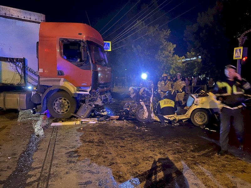 ДТП зафиксировано в 01:10. Водитель грузовика Renault Premium с полуприцепом при повороте налево на зеленый сигнал светофора не уступил дорогу, и произошло столкновение с автомобилем ВАЗ-2114, ехавшим навстречу. В итоге 19-летний водитель легковой машины и три его пассажира 18 и 19 лет погибли на месте.