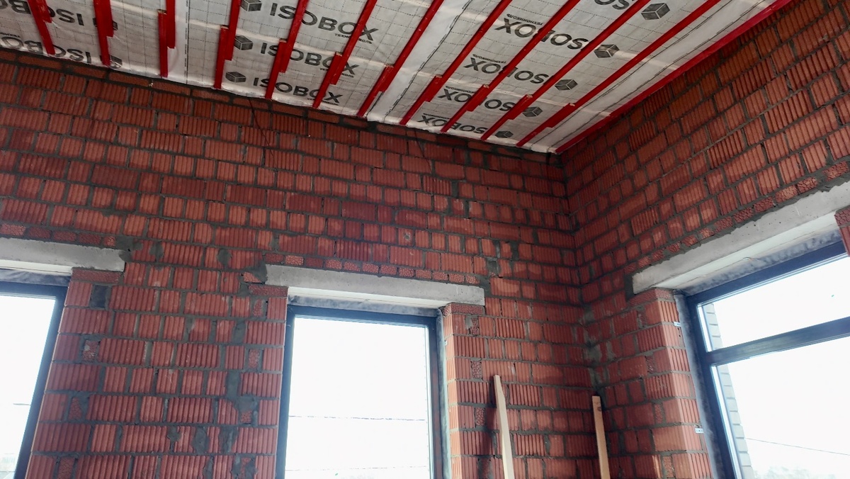 При возведении кирпичного дома есть такая вещь как армирование. В ряды кладки закладывается металлическая кладочная сетка, чтобы конструкция была крепче. Часто на это закрывают глаза и просто не делают. Экономия на отсутствии опорных зон. Над большими панорамными окнами должны быть прогоны, более толстые длинные массивные перемычки. Они в точках опирания концентрируют нагрузку, и это место должно быть проармировано и, возможно, выложено полнотелым кирпичом. Проще говоря, нужно максимально укрепить эти места. Зачастую с этим не заморачиваются, и, если стены уже заштукатурены, невозможно оценить качество, наличие или отсутствие опорных зон. Экономят чаще всего на стропилах. Например, шаг должен быть 60-80 см, а ставят через 1-1,5 м. Такая крыша несомненно какое-то время простоит, но в какой-то год может прийти беда в виде продавленной крыши. Это в основном происходит весной. Зимой снег пушистый легкий, а весной он начинает уплотняться под воздействием солнца и тепла, и это может