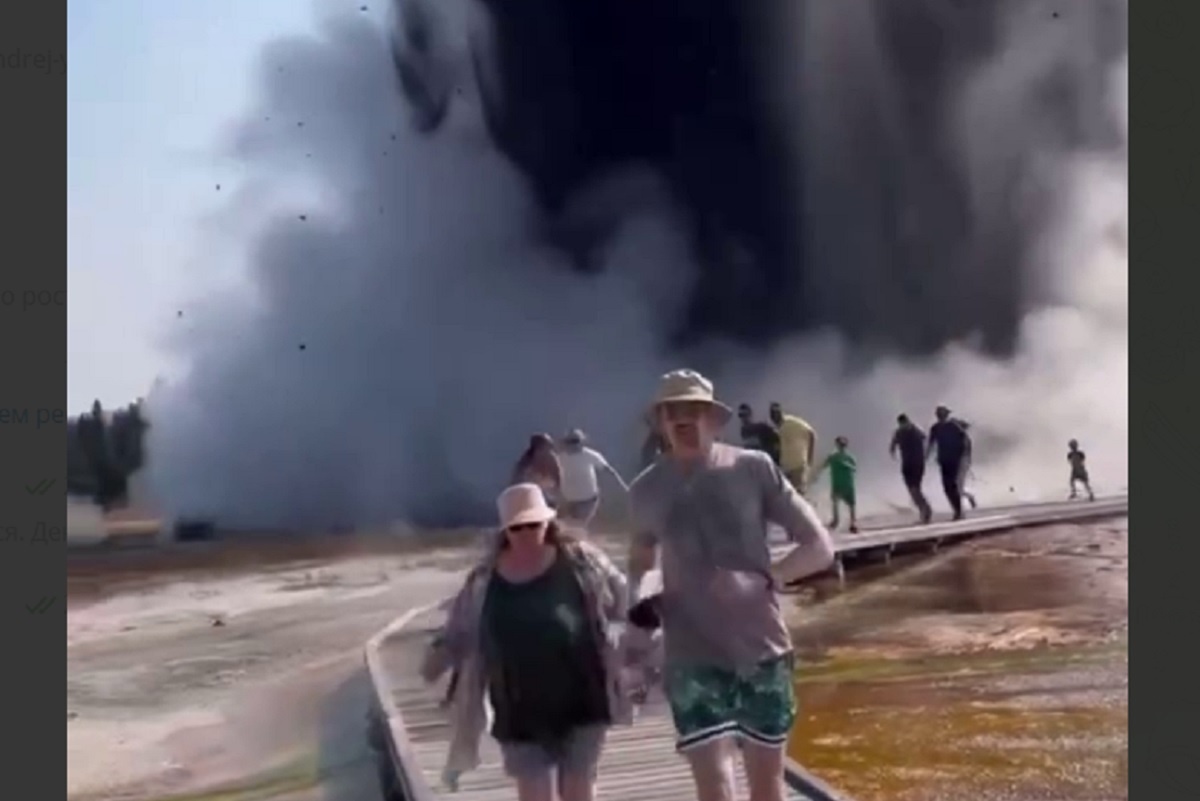 На доступных кадрах можно увидеть бегущих в страхе туристов, которые искали безопасной зоны в момент и после окончания извержения гейзера.