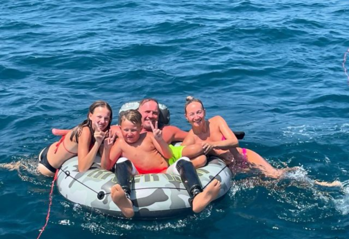 На фотографии фигурист запечатлен вместе с женой Оксаной Домниной и детьми на надувном круге в море. Спортсмен подписал пост: «Мой спасательный круг. Мои любимки».