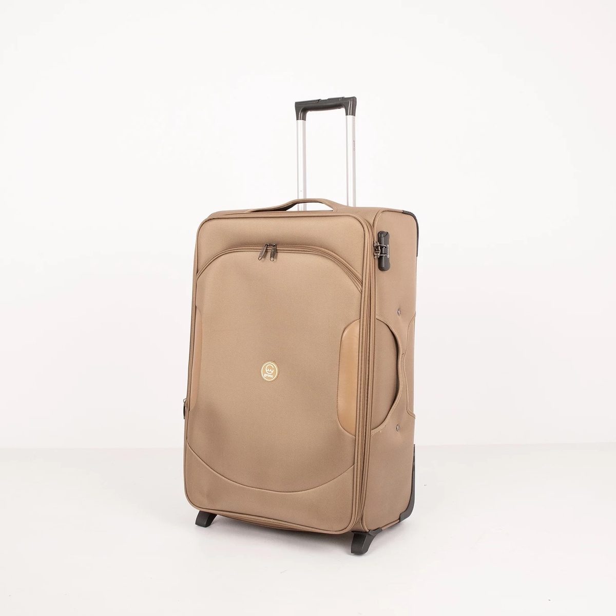 Верхние углы и нижняя часть укреплены накладками. Закрывается молнией с двумя встречными бегунками; имеется кодовый замок. Внутри: текстильная подкладка из полиэстера плотностью 210 Ден; на крышке – карман-сетка на молнии, в глубоком отделении – ремни для фиксации багажа. Имеется раздвижка на молнии для увеличения объема. На лицевой стороне – два кармана на молнии (один откидной, для удобства использования в вертикальном положении). Сзади – выдвижная адресная бирка.
