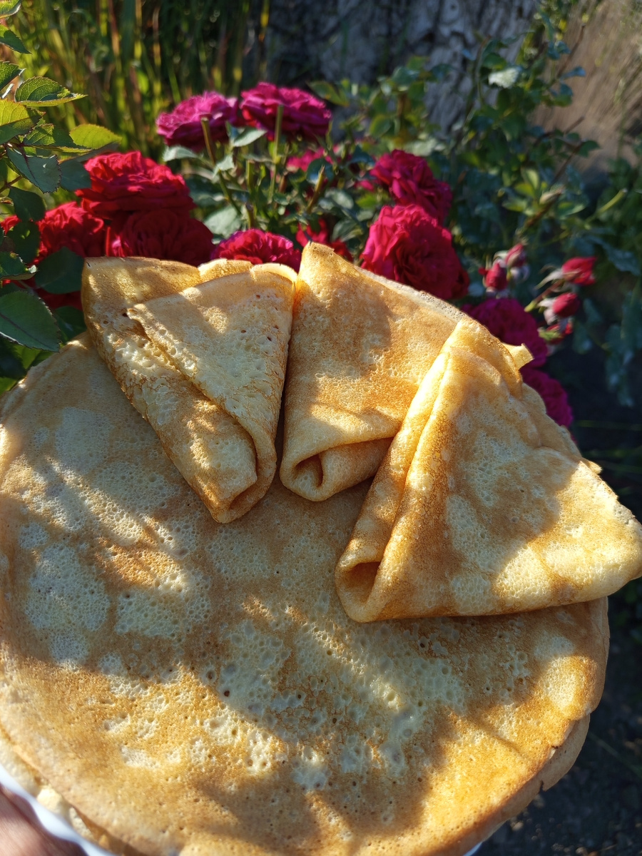 Для приготовления блинов нам понадобится : Способ приготовления : Молоко и воду смешиваем в ёмкости где будем делать тесто на блины. Добавляем яйца,соль ,сахар и размешаем венчиком. Всыпаем постепенно муку и размешаем так чтобы не оставалось комочков .Смотрим на консистенцию ,муки может понадобиться меньше чем 250 г , мука разная .Добавляем растительное масло ,тесто готово. Смазываем сковороду маслом и жарим наши 🥞 блины .С порции получается около 20 блинов.