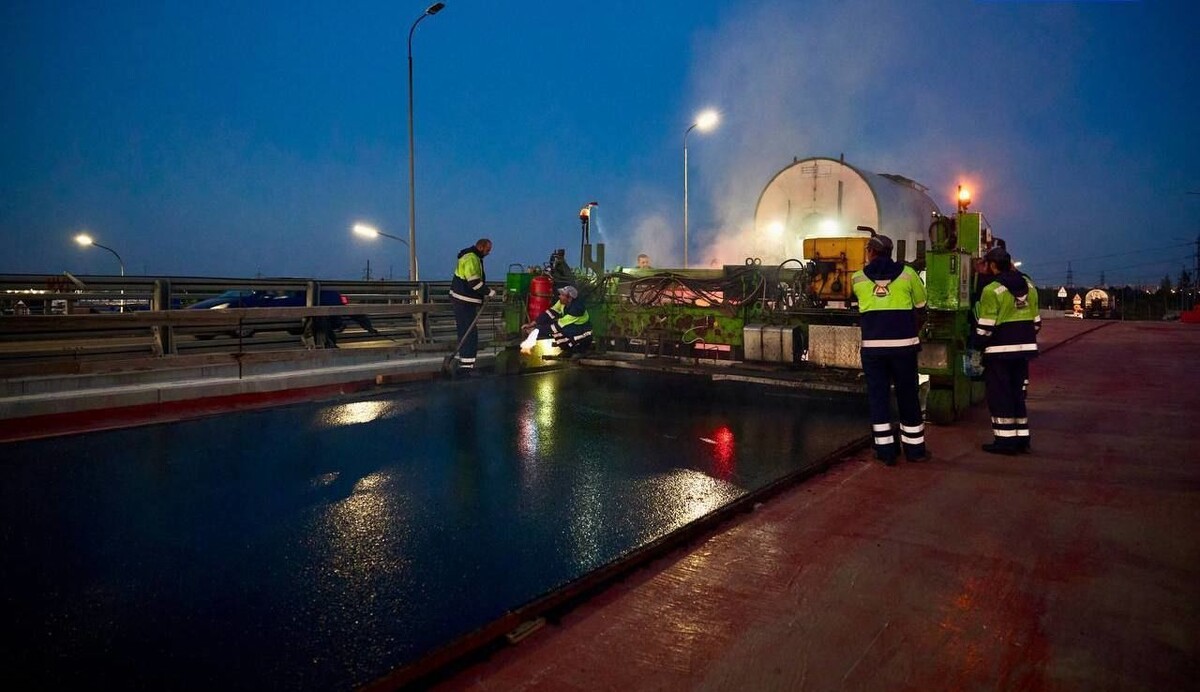 На новой развязке в Кудрово ночью уложили первый асфальт: литое покрытие появилось на построенном путепроводе над Мурманским шоссе, сообщили сегодня в пресс-службе дорожного комитета Ленобласти. «Поверх литого асфальта скоро будет уложен второй слой, которому уже потребуются катки, – говорится в сообщении. – Потом – разметка, перепуск движения на новый мост и закрытие старого путепровода на реконструкцию». Ранее «Петербургский дневник» сообщал, что за первые шесть месяцев было нанесено и обновлено более 435,6 тыс. квадратных метров дорожной разметки, что составляет примерно 60% от запланированного объема работ на текущий год.
