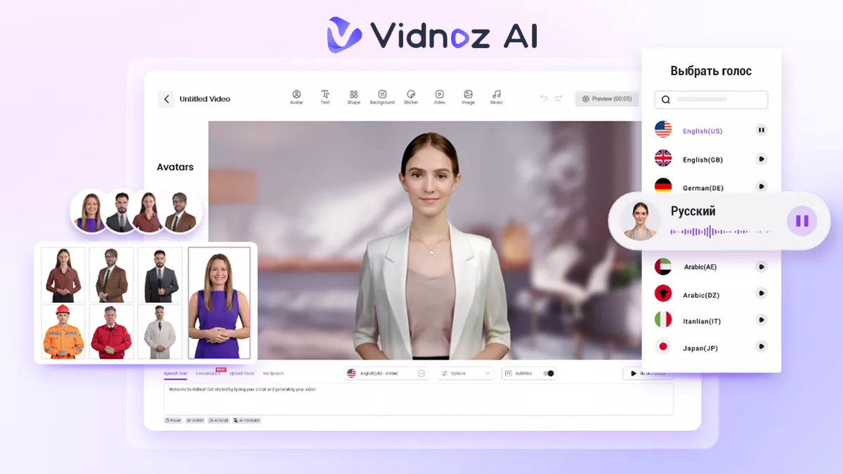 Одной из наиболее впечатляющих функций Vidnoz AI является возможность создавать реалистичных виртуальных ведущих. Используя технологию deepfake, платформа может генерировать видео с говорящими аватарами, которые выглядят и звучат как настоящие люди. Вы можете выбрать внешний вид, голос и даже манеру речи вашего виртуального ведущего. Это открывает огромные возможности для создания персонализированного контента и локализации видео для различных аудиторий без необходимости нанимать актеров или проводить дополнительные съемки.