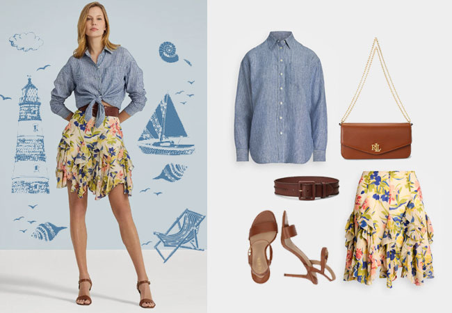 Образ в сине-белой гамме с полосками всегда наполнен свежестью лета, романтикой морского бриза и «невыносимой легкостью» отпускного бытия. Хотя морской стиль прочно вошел в категорию "вечной классики", стилисты раз за разом предлагают нам его новую интерпретацию. Образ на основе игры белого и черного цветов с вкраплением металла смотрится небанально и экстравагантно Плюсы: подходит как для повседневного, так и вечернего выхода. Не останетесь незамеченной! На это лето он предлагает обновленный морской стиль, где кроме привычного клубного пиджака и тельняшки, ключевые позиции занимают свободные джинсы-варенки и цветастая юбка. Привычный клубный пиджак + слипоны цвета коньяка +модные джинсы-варенки. Плюсы: молодит и стройнит. Можно носить долго, не надоест! Юбка в цветочек итальянской длины (около коленей) и босоножки на шпильке - серьезная заявка на привлечения внимания окружающих. Это парафраз коллекции в новом морском стиле от корифея бренда – Ralph Lauren. Обратите внимание на цв