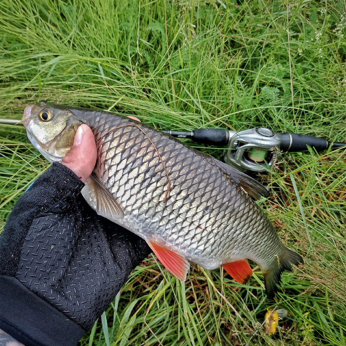 Поехал я на днях на домашнюю речку. Шнурье на воблеры подёргать. И был на маршруте довольно интересный перекатик, где, теоретически, вполне мог быть голавлик. А как раз перед рыбалкой забрал с пункта выдачи посылку с новым, ранее не испробованым голавлёвым тараканом. И вот приехал я на речку. Основной план - гонять шнурьё на твич. Под это дело собираю снасть: Norstream Skald с тестом ( по воблерам) 5-18 грамм Piscifun Alloy M I Am Number One Safe #2.5 Беру коробку с проверенными воблерами - и выдвигаюсь на маршрут. А поскольку новый таракан мне " жёг карман"- бросил в коробку и его тоже. Ну и ещё парочку голавлёвых приманок. За компанию. Расчёт был такой: если увижу на перекате нормальную активность голавля, то вернусь к машине за УЛ комплектом.