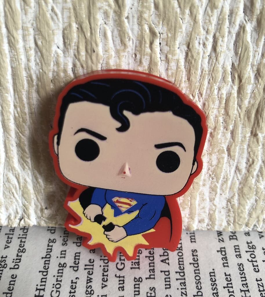 Знакомьтесь, новая находка киндер “Супермен”, который валялся на самой середине улицы и, конечно, Даня не могла пройти мимо. Теперь он живёт у меня среди всех берлинских сюрпризов. На ебей такая игрушка стоит 1,99, но мой особенный - у него на носу красная точка. А придумали этого героя в 1983 году два еврея - Джерри Сигел и Джо Шустер. Настоящее имя супергероя - Кал-Эл, что с иврита переводится как “Имя Бога”.
