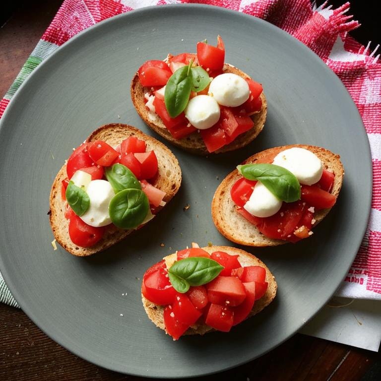 Вам понадобятся: 1. Багет — 1 шт. 2. Помидоры — 2 шт. 3. Сыр моцарелла — 100 г. 4. Базилик — 1 пучок. 5. Оливковое масло — 2 ст. л. 6. Соль, перец — по вкусу. Приготовление: 1. Нарежьте багет на тонкие ломтики. 2. Обжарьте их на сухой сковороде до золотистого цвета. 3. Нарежьте помидоры кружочками. 4. Нарежьте моцареллу тонкими ломтиками. 5. Выложите на каждый ломтик багета кружочек помидора и ломтик моцареллы. 6. Посыпьте сверху базиликом, посолите и поперчите по вкусу. 7. Сбрызните оливковым маслом. 8. Подавайте брускетту горячей.