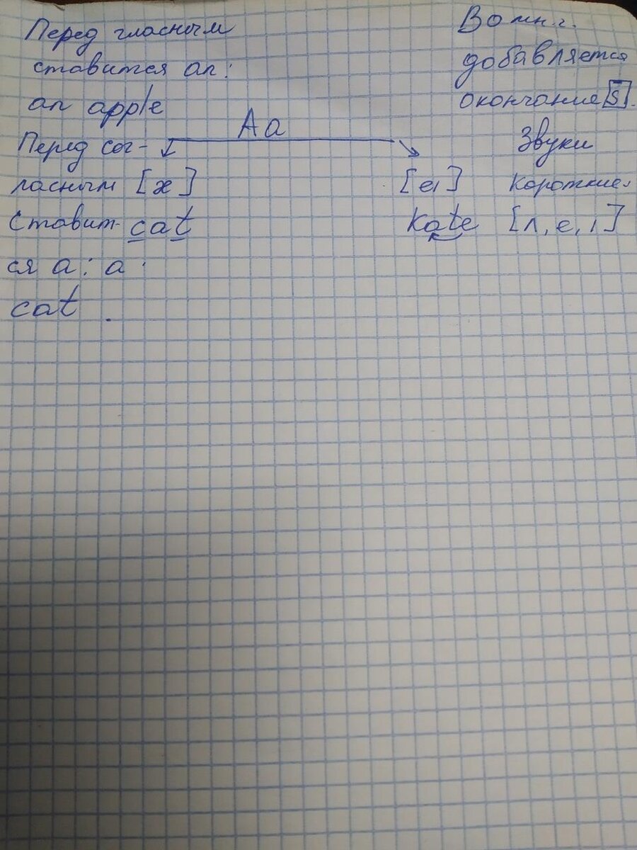 Я ведь как прошу? Вот расписали мы чтение буквы А. Потом ниже – что-то про звуки. Еще ниже – про артикль, допустим.