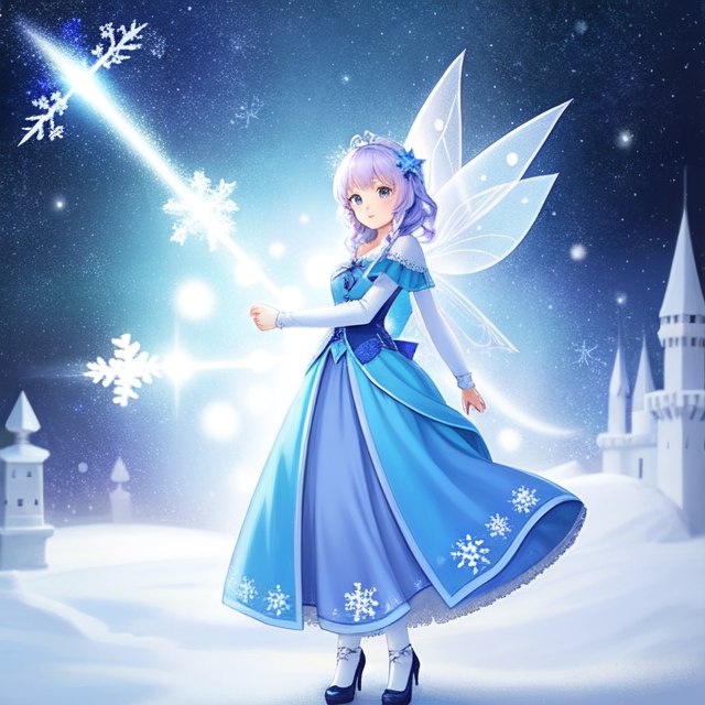 Жила-была в далёком-далёком лесу маленькая добрая фея по имени Снежинка. У неё были прозрачные крылышки, которые переливались на солнце, словно хрустальные, и она обладала волшебной силой — магией льда. Снежинка могла создавать снежинки, ледяные узоры и даже волшебные ледяные скульптуры. Каждое утро Снежинка просыпалась в своём уютном доме, спрятанном в заснеженной ёлке, и начинала свой день с того, что отправлялась в путешествие по лесу. Она любила помогать своим друзьям — лесным жителям. Если зайчонок потерялся, Снежинка создаст для него ледяную тропинку, которая приведёт его домой. Если белочка замёрзла, Снежинка подарит ей тёплую ледяную шубку, которая согреет даже в самый холодный день. Однажды, когда Снежинка прогуливалась по лесу, она услышала тихие всхлипывания. Следуя звуку, она нашла маленькую девочку по имени Лиза, которая заблудилась и не могла найти дорогу домой. Лиза была напугана и замёрзла. Снежинка мягко прикоснулась к плечу Лизы и сказала: — Не плачь, милая. Я — д