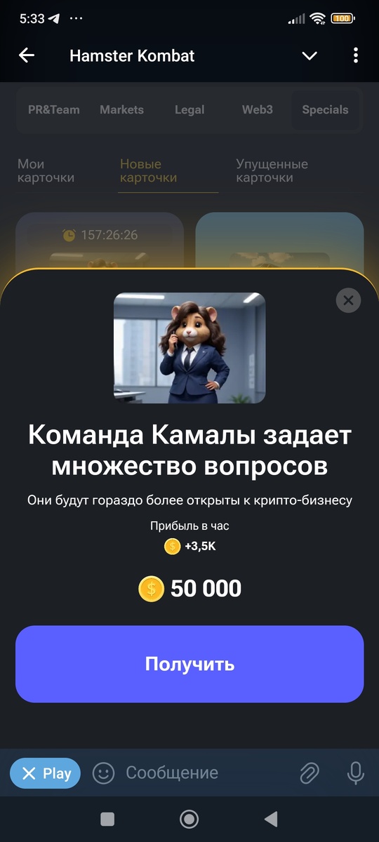 Опять новая карточка из раздела "Specials"))) , как всегда с таймером прокачки, правда сейчас временная. Успейте прокачать