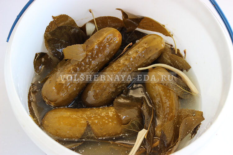 Бочковые огурцы обладают своим уникальным вкусом. Но если нет бочки, то можно засолить огурцы на зиму в ведрах. Засолку огурцов холодным способом можно производить в эмалированном ведре или в пластиковом с пометкой «Для пищевых продуктов». Для приготовления не используется уксус. Процесс консервирования заключается в естественном брожении, вызванном молочной кислотой, которая содержится в огурцах. Этот способ приготовления годится только для тех, у кого есть погреб, потому что огурцы просто заливаются холодной соленой водой и сразу переносятся в холод (здесь не имеется ввиду холодильник, нужен именно погреб, там оптимальная температура для брожения). Первую пробу можно будет снять спустя 3 месяца. Общее время: 3 месяца | Время приготовления: 30 минут