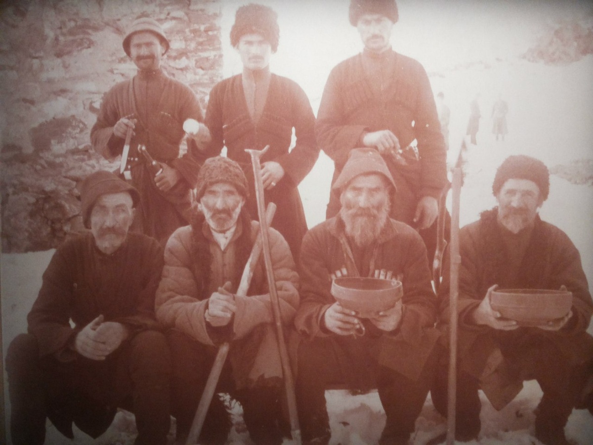 Перебирая старые фотографии, наткнулся на фото, которое я сделал в 2013 году в Грузии, в тренировочном зале международной федерации грузинских боевых искусств Хридоли. Там эта фотография, напечатанная в большом размере, украшает стену и напоминает современным грузинским спортсменам о героях прошлого. Неизвестно, кто все эти люди. Вероятно, всех имен уже и не вспомнить, а о некоторых может знать лишь хранитель и историк национальных боевых традиций Нукри Мчедлишвили. Я же знаю только про одного. Вот он, в верхнем ряду слева, напоминающий забавного кавказца из какой-нибудь старой советской комедии. Это Миха Ликокели. Фото сделано еще до того, как Миха убил нечистого на руку чиновника… После этого убийства, Миха был выслан на Сахалин. А после того, как в июле 1905 года Сахалин заняли японцы, ему пришлось держать оборону в собственном доме. Миха, вооруженный хевсурским щитом и саблей, встал посередине комнаты и убил больше десяти (по некоторым сведениям – 13) японских солдат. Тогда один