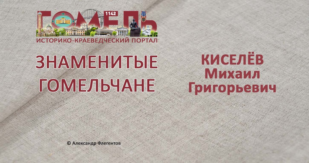 Михаил Григорьевич Киселёв (13.11. 1946, Гомель) — белорусский учёный в области конструирования и производства приборов, ультразвуковой технологии. Уроженец Гомеля. Доктор технических наук (1990), профессор (1991). Заслуженный работник образования Беларуси (1995). Окончил Белорусский политехнический институт (1969). С 1972 года работает в Белорусском национальном техническом университете (в 1981-1997 годах декан, одновременно с 1982 года заведующий кафедрой). Научные работы по ультразвуковой технике и технологии, разработке эффективных методов и средств обработки сверхтвёрдых материалов путём применения акустической энергии. Энциклопедия Регионы Беларуси. Гомельская область. Том 3. Книга 1. 2012
