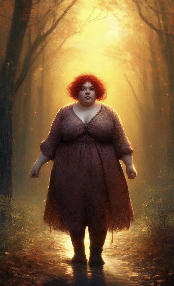 Медленно Шурик обернулся и увидел странную тётку,похожую на колобок,с рыжими с припизьдью волосами ,торчащими в разные стороны,в ночнушке и калошах.