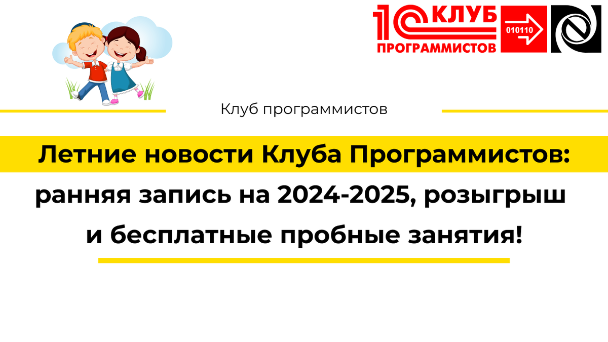 Летние новости Клуба Программистов: ранняя запись на 2024-2025, розыгрыш, бесплатные пробные занятия!