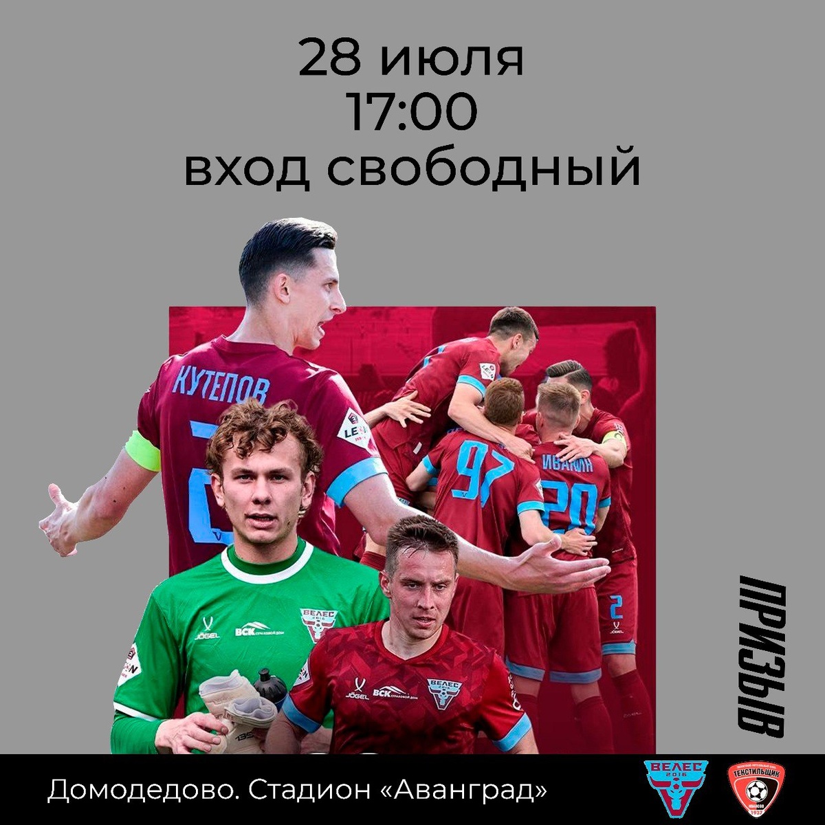 Игра состоится между командами «Велес» —«Текстильщик» (Иваново). Вход свободный.