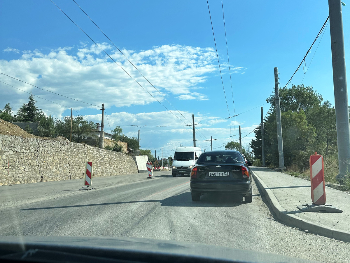 Выезжали мы в 8:40, до Алушты нам из Кастрополя ехать 1 час. Но мы ехали 1,5 часа из-за ремонта участка дороги от Ялты до Алушты.