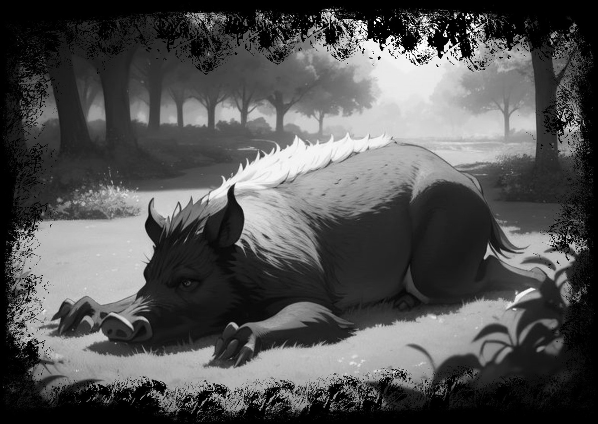 Спустя пару минут один из кабанов валялся у его ног, а второй улепетывал, трусливо поджав хвостик.