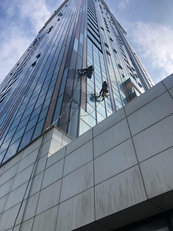 Команда "Альпми" отправилась на побережье Черного моря. И совсем не в отпуск! Мы мыли Porta Tower, высотку в самом центре Батуми. Дом высотой 145 метров. Работа на такой высоте добавляет технических сложностей, да и даже самым смелым альпинистам находиться там неуютно. Для сравнения самое высокое жилое здание в родном для нас Петербурге — всего 126 метров. Хотя, конечно, мы работаем и на Лахта-центр, но это уже особый случай. Площадь всего остекления Porta Tower тоже немаленькая: 17 000 квадратных метров. Раньше весь этот объем обслуживался с люлек, но мы посчитали, что промышленными альпинистами, даже на таком доме, мыть быстрее, а значит и дешевле. Мы сократили срок выполнения с 60 дней до 15 по сравнению с предыдущим исполнителем! Нам повезло с погодой: светило солнце, и почти не было ветра. Кроме того, мы быстро нашли общий язык с управляющей компанией, которая оперативно помогала по всем возникающим вопросам, а мы мыли не только быстро, но и качественно. Поскольку пока у нас есть