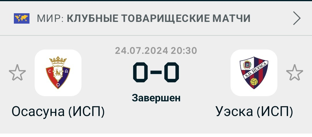 Привет подписчики. Давайте поговорим про ещё один поединок вчерашнего игрового дня. Осасуна против Уэски. Не самый очевидный, но на мой взгляд интересный поединок. Сейчас я объясню причину, по которой я выбрала данный матч. Осасуна и Уэска последний раз играли между собой в официальном матче в 2021 году в сезоне 2020 - 2021. Тогда обе игры завершились вничью. 1 : 1 и 0 : 0 соответственно. В том сезоне Уэска вылетела из высшего дивизиона Испании и не появлялась там уже на протяжении 3 лет . Все эти годы Осасуна проводит товарищеские матчи против данного соперника. 2 года подряд они играли друг против друга. Оба раза Осасуна одержала победу. 1:0 и 4:3. Вчера была третья товарищеская игра между данными соперниками за последние годы. Уэска очень слабо провела прошедший сезон Во втором по силе дивизионе Испании. Команда чуть не вылетела, заняла семнадцатое место в турнирной таблице. Осасуна стала одиннадцатой в Ла Лиге. Однако в товарищеском матче против команды из второго по силе дивизиона