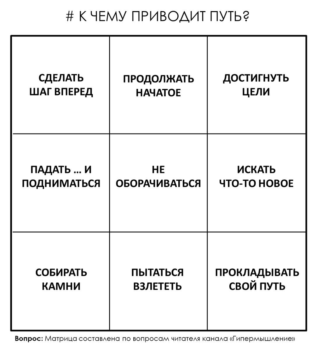- почему этот вопрос поставлен именно так? В связи с этим у меня появился вопрос, ответ на который может пролить свет для многих людей, кто задумывается по жизни и над жизнью. Это не совсем вопрос о смысле жизни и не о результате, к которому мы все идем. В общем я его сформулировал так: "К чему приводит путь?". И я уже начал отвечать на него: А чему по-вашему должен приводить путь?