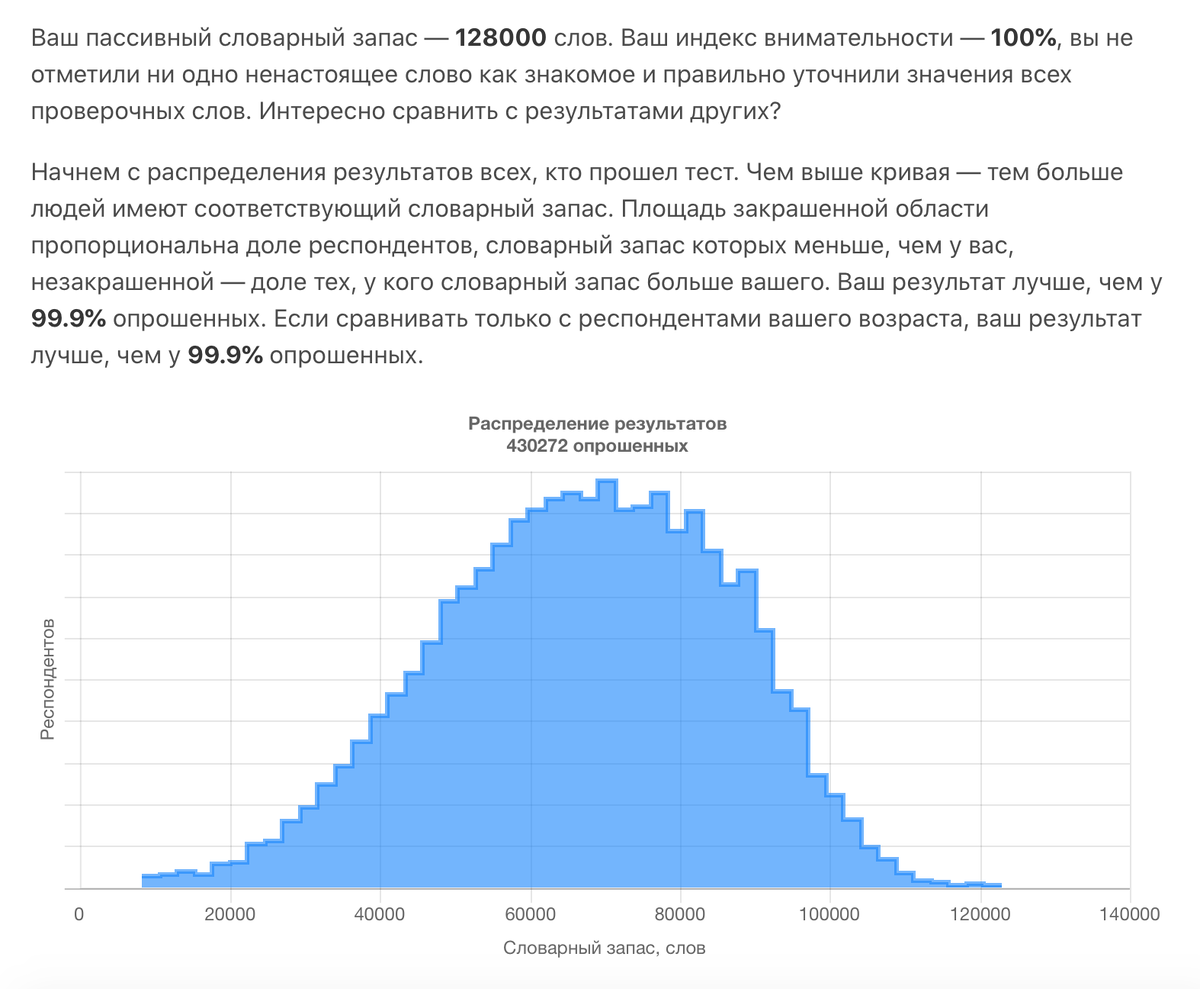 Да и в здешнем тесте точность определения размеров пассивного словарного запаса остаётся на совести авторов. Аналитическую математику они не раскрывают...