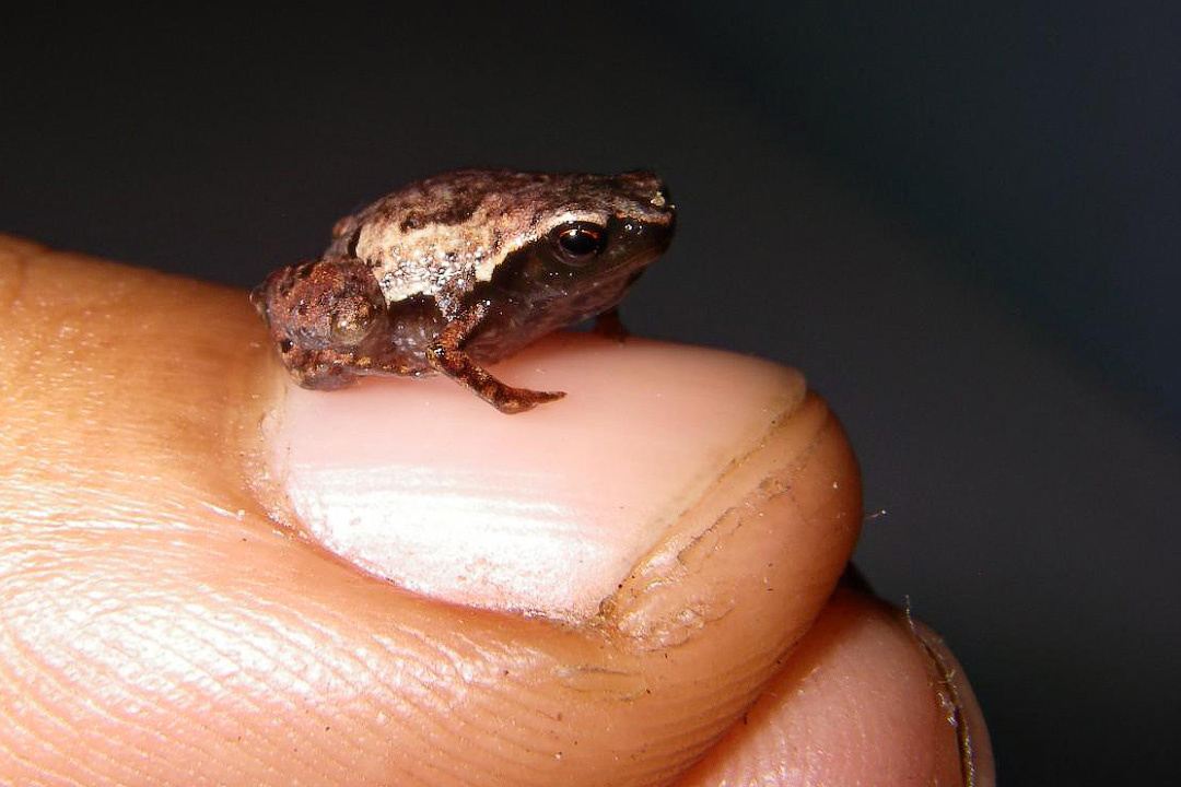Привет, мои дорогие любители необычной земной фауны. Сегодня у нас рубрика "Самые-самые", в которой я расскажу вам о том, какое земноводное нашей планеты претендует на титул самого маленького представителя своего класса. Впрочем, я даже преуменшил его титул, простите за каламбур... На самом деле, это не самое маленькое земноводное на планете, а самое маленькое позвоночное на планете. Если, конечно, под понятием "маленький" понимать длину тела. Ближе всех по этому показателю к нашей рекордсменке некоторые виды рыб, не превышающие в длину 7,9 мм. Но это, всё же на 0,2 мм больше чем 7,7 мм. Именно такая длина у этой крохи. А зовут её – микрокваша Амау (Paedophryne amauensis), и живёт она на Новой Гвинее. Первый раз её обнаружили только 2009 году, возле деревушки Амау, в честь которой животное получилось свой видовой эпитет на латыни. Обнаружить эту кроху не так уж и просто, и понятно, почему она так долго ускользала от взоров учёных. У неё покровительственная окраска, которая отлично маск