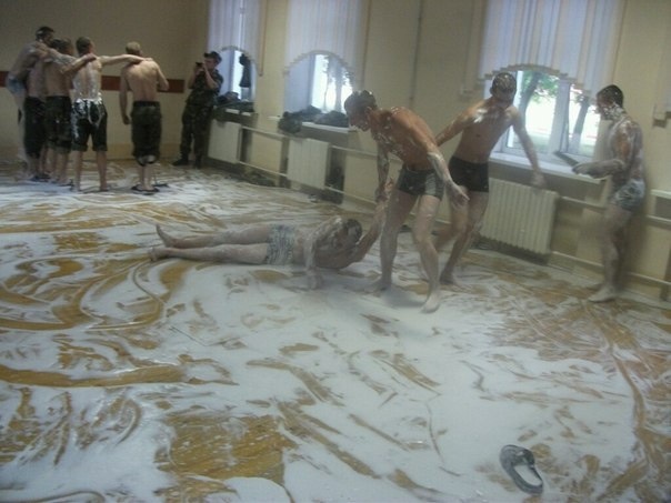 1. Юрий К. поделился: "У нас ПХД начинался с построения на улице вместе с ....кроватями. А в пустой казарме начиналось натирание полов "Машкой", представляющей собой маховик КрАЗа с закреплёнными снизу щетками и сидящим сверху духом. В качестве жидкости для натирания использовался раствор марганцовки. Полы блестели как у кота яйца и имели красивый яркий цвет. Когда через полгода перевели в Москву, я был в шоке - полы покрыты линолеумом, мылись просто водой с мылом. Никакой романтики!" 2. Вячеслав Шабунин добавил: "Служил в автороте ВВ МВД РФ. За мной была закреплена шиномонтажка части. Жил припеваючи всех офицеров переобувал гражданские авто. Но про ПХД. Был у меня один секрет. Ведро воды два куска мыла в тряпку. По тряпке пару ударов кувалдой. Все что осталось от мыла в ведро. И шланг с подкачкой колес с ведро.... Пены было даже ротный в шоке был. Говорил чтобы пена выше колен была ни разу не видел..." Подписаться или поставить лайк – дело добровольное и благородное…