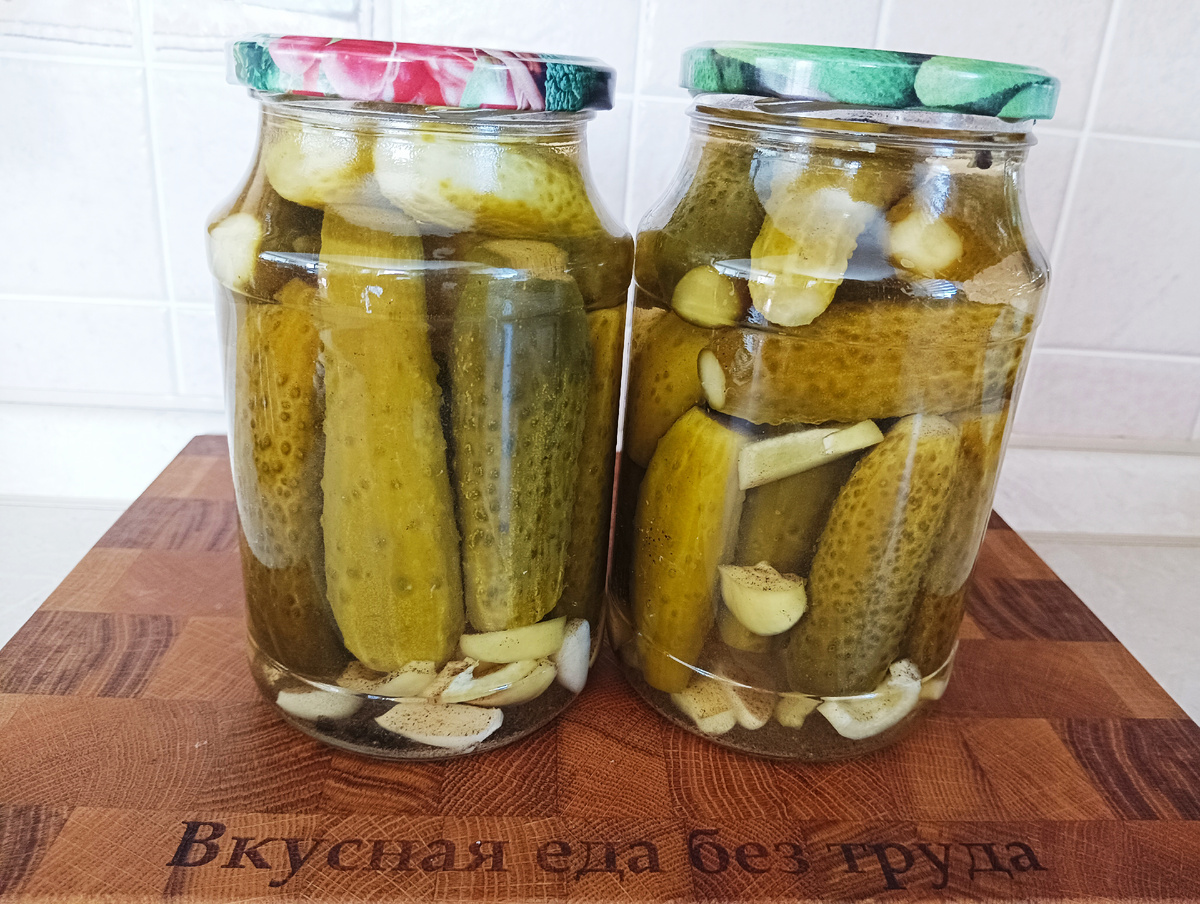 Рецептом со мной ещё в прошлом веке поделилась коллега, уроженка Чернигова, ставшая москвичкой. Она сказала, что так заготавливают впрок огурцы в их краях городские (как правило) жители. Огурцы консервируют без зонтиков укропа, листьев смородины и хрена, поскольку их в магазине не продают. Консервы без свежей зелени более надёжны при хранении. В городской квартире хорошо сохраняются в тёмном прохладном месте. Если есть сладкий перец, то его можно добавить, но это необязательно. Я очень люблю так законсервированные огурцы. Они и вкусные, и простые в приготовлении, и хорошо хранятся. Огурцы тщательно мою и обрезаю у них кончики и помещаю в кастрюлю или другую ёмкость с крышкой. Огурцы заливаю кипятком. Вода должна покрывать огурцы. Закрываю кастрюлю крышкой. Удобно консервировать в литровых банках. Но расчёт ингредиентов легко перевести и на другие ёмкости. Ингредиенты на 1 литровую банку: примерно 600 гр. огурцов 1/2 болгарского перца (по желанию) 2 зубчика чеснока 5 горошин чёрного п