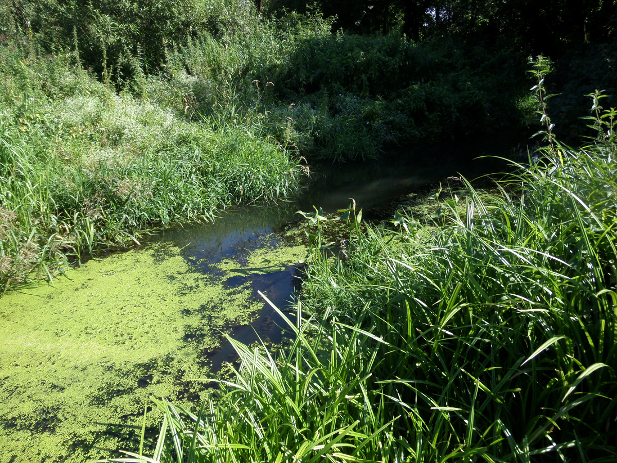 Много читал о рыбалке на малых реках летом. Рыба в жару уходит в них из больших речек, находя там более прохладную воду и тень. Но рыбачить до этого времени не приходилось. Дело в том, что местный молочный завод регулярно сбрасывает отходы в нашу речушку, не оставляя шанс рыбе. Но помог случай. Когда-то мелиораторы решили выпрямить извилистую речку, прокопав новое прямое русло. Но до конца работу не доделали и русла стало два. Затем в месте отхода нового русла, бобры поставили плотины, и вода в новом русле стала чище. Ну а три паводка этого года еще сильнее улучшили ситуацию, и, хотя до идеала было далеко, но теперь можно даже разглядеть дно. И вот проходя по мостику на родник, я увидел в речке рыбу. Остановившись, стал наблюдать. Это оказались караси. Из-под ряски регулярно выскакивали голавли что-то хватая и снова прячась под траву. Когда из-под куста выплыл здоровый линь, я не выдержал и бросился на дачу за удочкой, благо было близко метров четыреста. Из насадки был только опарыш, н