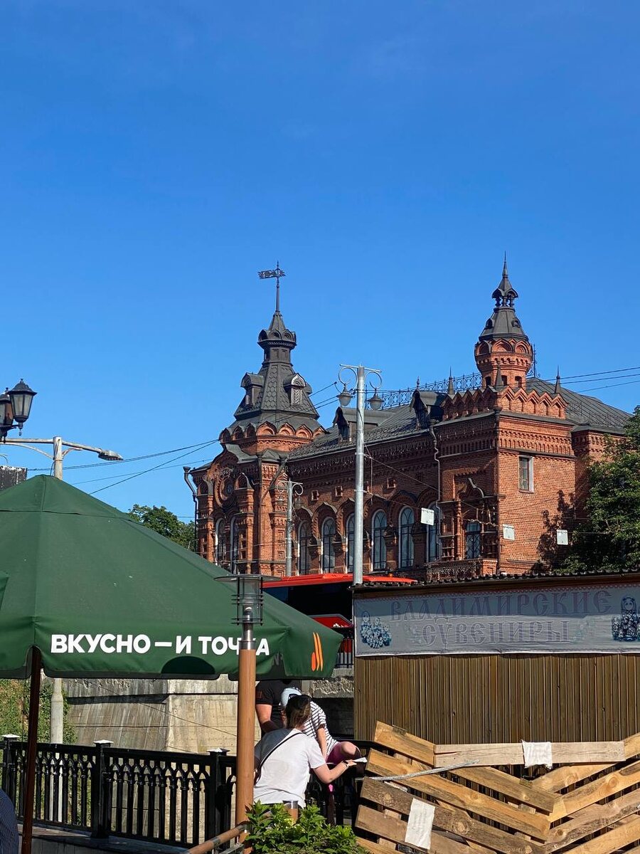 Мы с подружками поехали в небольшое путешествие по городам России. Первая наша остановка была во Владимире. Я во Владимире 3 раз, и каждый раз он оставляет у меня неоднозначные чувства. Обязательно первым делом нужно сходить в Успенский собор 12 века и проведать фрески Андрея Рублева и Даниила Черного. В целом, интересно, что в одном соборе сохранены фрески 12, 13, 15, 19 и 20 веков, но целостным интерьер сохранить не удалось. Мне Владимир, кажется, нравится, но фрагментарно. В нем нет какого-то единства — в одном здании могут соседствовать модная кофейня и пошлячий музей. Абсолютно разные архитектурные стили конкурируют друг с другом. Какая-то часть центра облагорожена, а другая нет. Отсутствие общего дизайн кода (который для Владимира не так сложно было бы найти, город с богатой историей все-таки) сильно разобщает город и оставляет странное впечатление. То, что тронуло мое сердце — расположение на холмах и постоянные перепады высот. Питеру, к примеру, этого не хватает. Оста