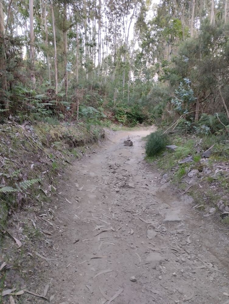Как я уже писал, в эту ночь я переночевал в хостеле, а не в приюте, отоспался. Завтрак с чаем и с сэндвичем с хамоном стоил мне 3,3 Евро. Пока было еще не жарко, я старался идти побыстрее. Благо и грунтовая дорога была приятна для ног. Кто-то из предыдущих паломников выстроил на дороге такую пирамидку.