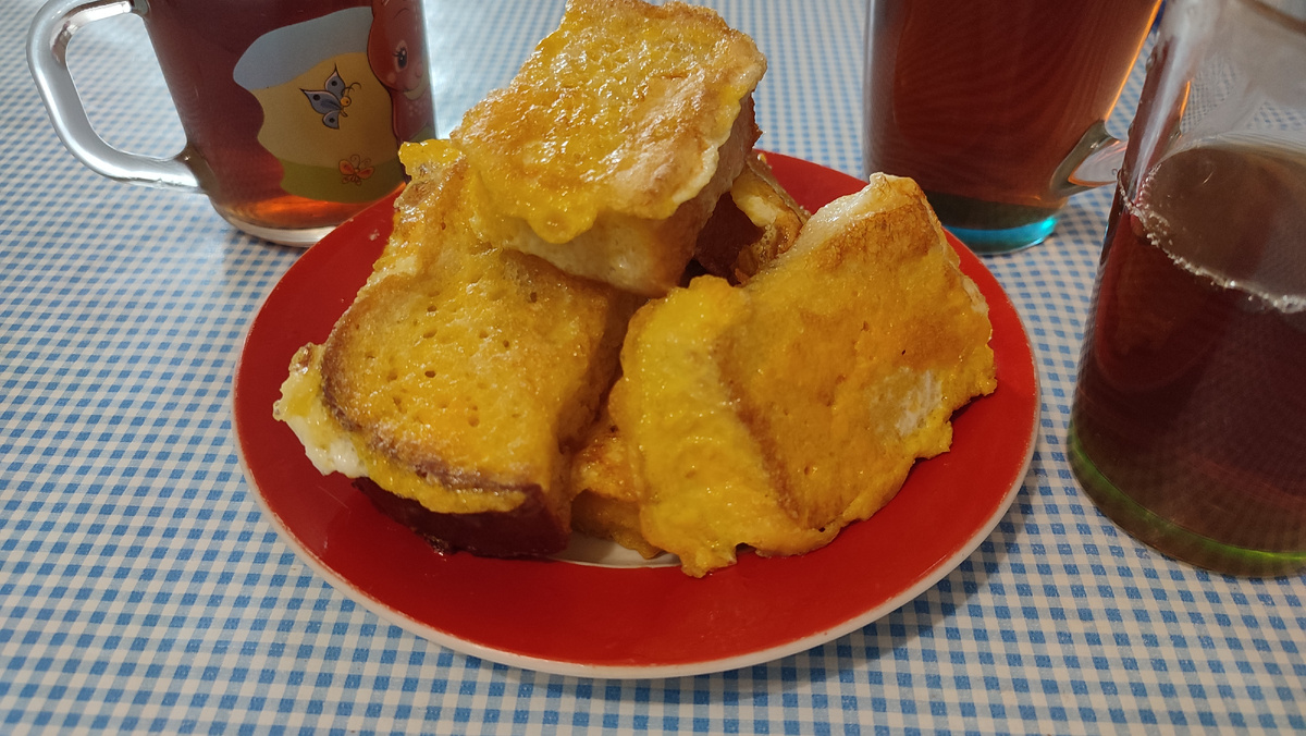 Приветствую, вас, мои дорогие! 💜 На сегодня у нас простенькое меню. Я конечно немного сглупила, но это ничего страшного. Сегодня я как никудышная и бестолковая мать проспала всё на свете😀. Ну ладно, дала себе немного расслабиться. Идеальные мамы, простите меня! 😀 Всю неделю вязала. Вязание тоже оказывается отнимает много сил. Короче, проснулась и встала я, только в 11.00. 🤦♀️🤦♀️🤦♀️ Нет, конечно же я просыпалась. В 7.30 проснулась в детской. Вчера укладывала дочку, там сама и уложилась. Проснулась и пошла к себе. Думала с утра чего нибудь вкусненького приготовить. Решила полежать. Полежала. Потом проснулась в 9.50, ну а потом конкретно встала в 10.50. Точнее даже не встала, а вскочила. 😄😄😄 А дети сидят в комнате и мультики смотрят. Короче, думать, что готовить времени не было. Сделала гренки. В холодильнике три яйца. В хлебнице три кусочка хлеба. Да, вчера же не покупали ничего. Разбила два яйца, и приготовила завтрак. Люблю, когда вот эта яичная жидкость о