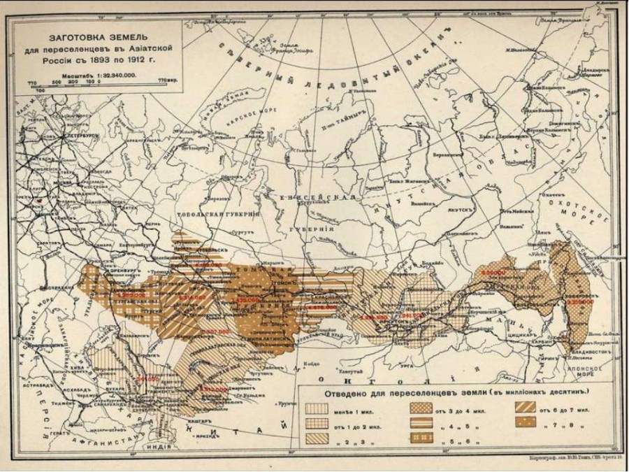 При переселении бесплатно по Транссибу доставляли до сибирских городов, давали подъемные. Переселение не было хаотичным. Были составлены карты кто, куда расселяется, в какой район.