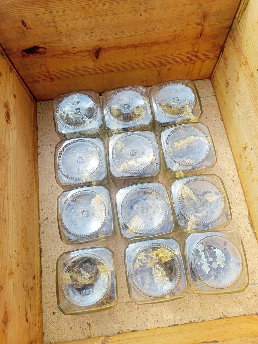 Здравствуйте! Мёд любят многие из нас, ведь это вкусно и очень полезно. В детстве я очень любил мёд в сотах, ел сам, угощал этим лакомством ребят во дворе. Благо мёда было всегда вдоволь, отец уже более 30 лет занимается пчелами. Сегодня покажу как делается мёд в банке. Это не только вкусно-полезно, но и выглядит очень красиво. В улей помещают фанерку в размер в которой заранее вырезаны отверстия на равном расстоянии друг от друга. А сверху над каждым отверстием ставится баночка. Внутрь баночки предварительно припаиваются полоски вощины, чтобы пчелы охотнее взялись за отстройку сот. Пчелы отстраивают соты и во время медосбора используют их в качестве хранилища мёда. Процесс этот не быстрый, но он того стоит. После того как пчелы забьют находящие в банке соты мёдом, баночку нужно убрать, залить её медом и закупорить крышкой. Получается вот такая красота.