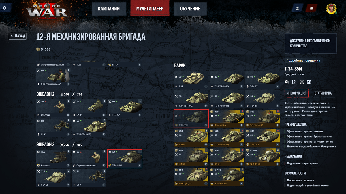 Однако, спустя много лет после выхода Men of War, BestWay попыталась вернуться к серии в условно-бесплатной Men of War: Arena. Мне вот сразу вспомнилась Total War: Arena, ведь даже смысл примерно такой же: игрок командует очень ограниченной в плане численности армией, постепенно открывает новые отряды и сражается в командных матчах. Если в Total War: Arena у каждого под контролем было только три отряда, то тут игрок выбирает между командованием пехотой, танками и артиллерией. Нет, вне зависимости от роли взять другие отряды можно, но пехоты тем же артиллеристам хватит разве что только для охраны пушек от просочившихся в тыл диверсантов. При этом система прокачки устроена примерно как в «Мире Танков»:разные ветки войск прокачиваются независимо друг от друга, поэтому для открытия, например, новых противотанковых пушек, нужно активно использовать предыдущие образцы. Есть ещё и свободный опыт, но он слишком медленно копится.